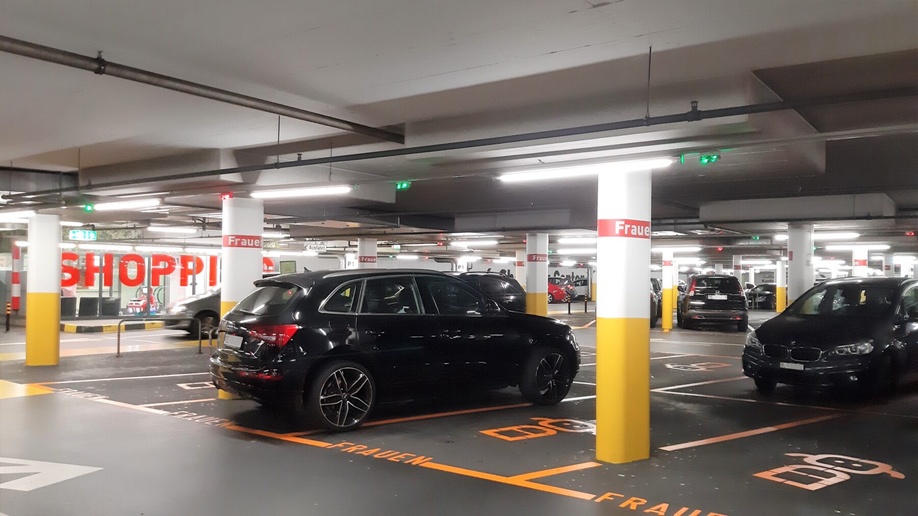 Gut zu wissen für grössere Fahrzeuge: Der Einfahrtsbereich misst 2.10 m in der Höhe.